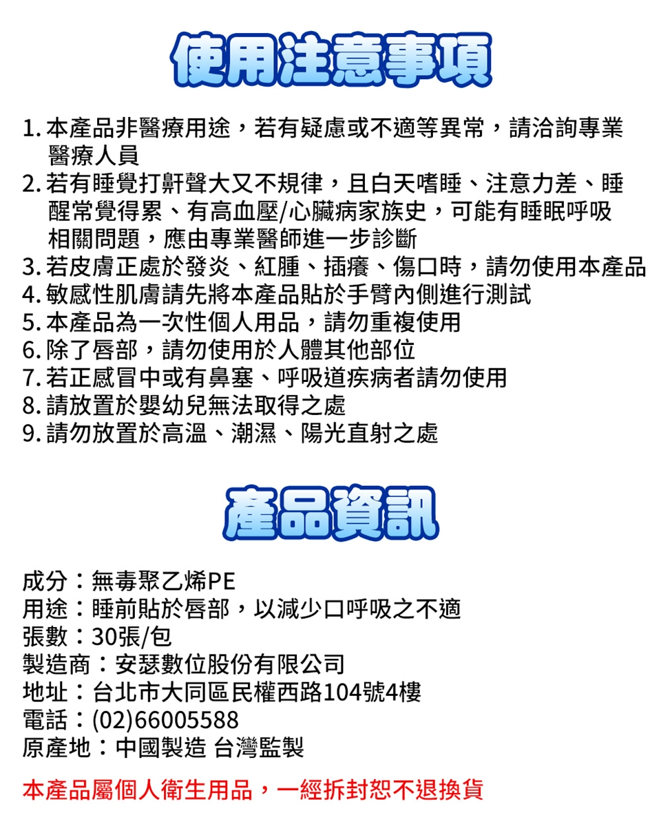 本產品屬個人衛生用品,除商品瑕疵外,一經拆封恕不退換貨