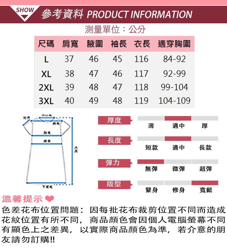 ◎ 色差花布位置問題:因每批花布裁剪位置不同而造成花紋位置有所不