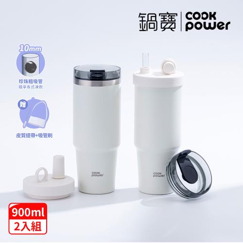 【CookPower 鍋寶】買一送一 純白系_珍珠粗吸管陶瓷雙蓋雙飲杯900ml
