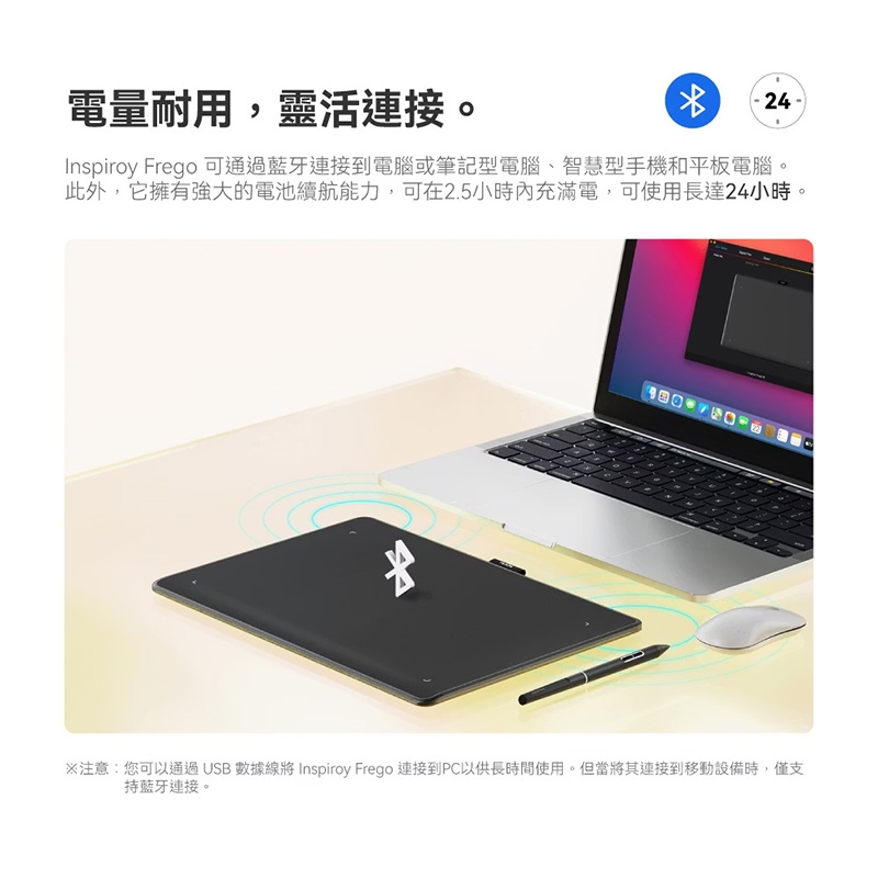 ● 續航長達24小時,讓創意持續不間斷
