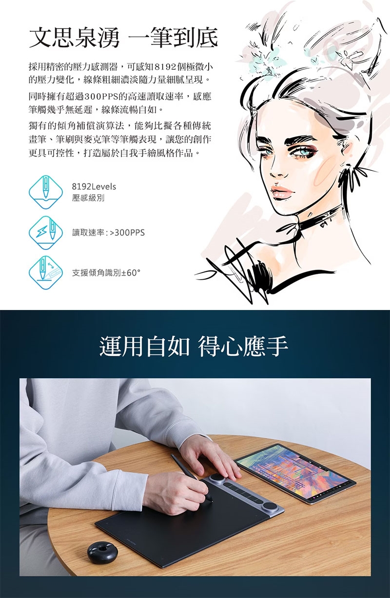 ● 8192階感壓 / 300PPS / 8mm纖薄便攜