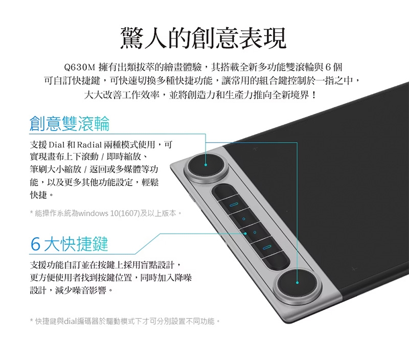 ● 多功能雙滾輪+6個可自訂快捷鍵,創作更有效率