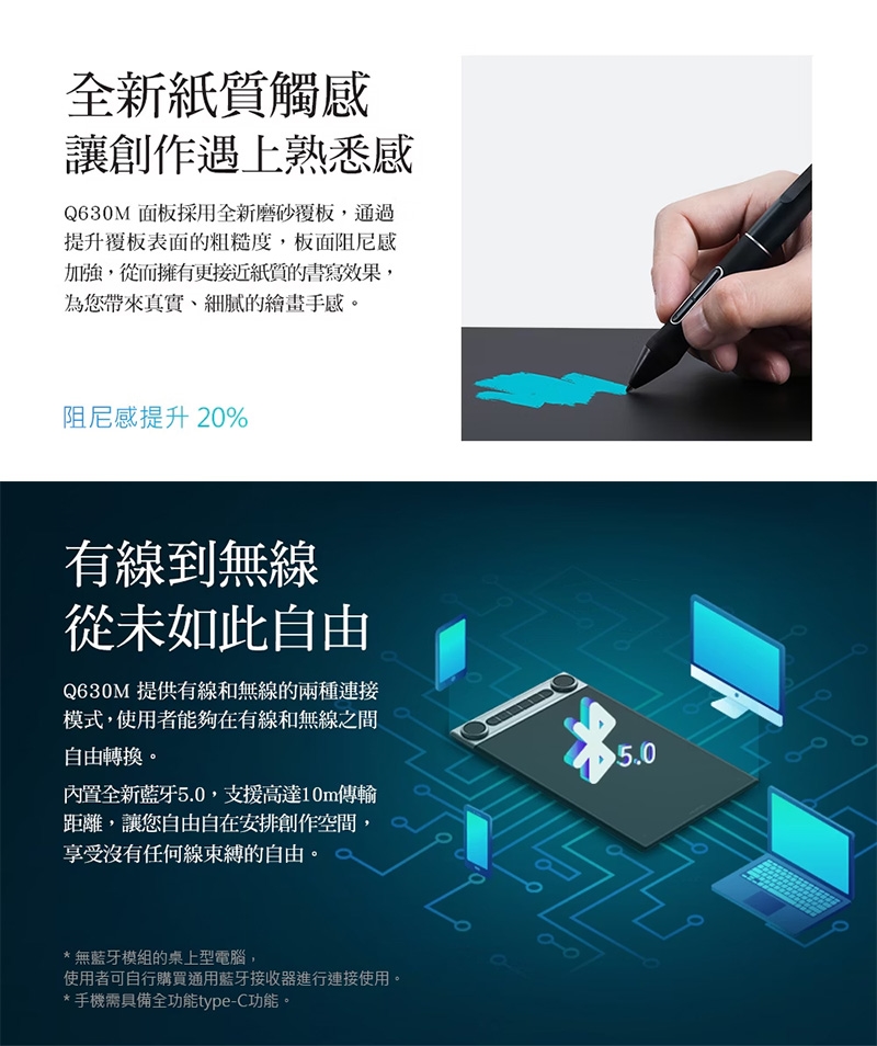 ● 藍牙5.0無線+有線雙模式,創作更自由