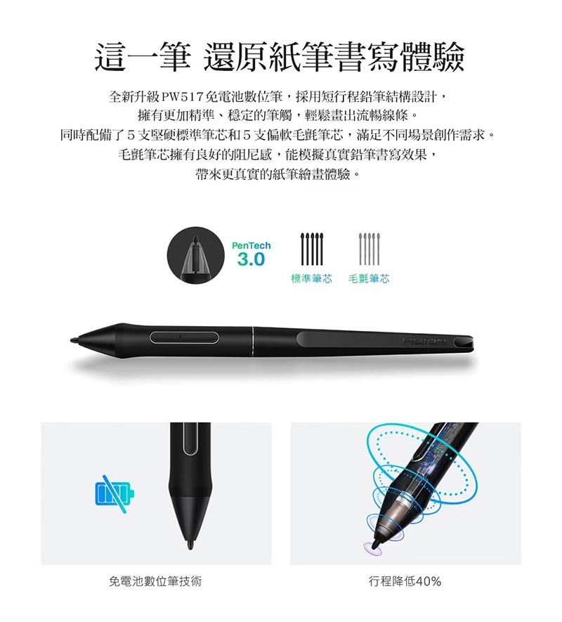 ● PenTech3.0筆技術,筆尖穩固,書寫細膩