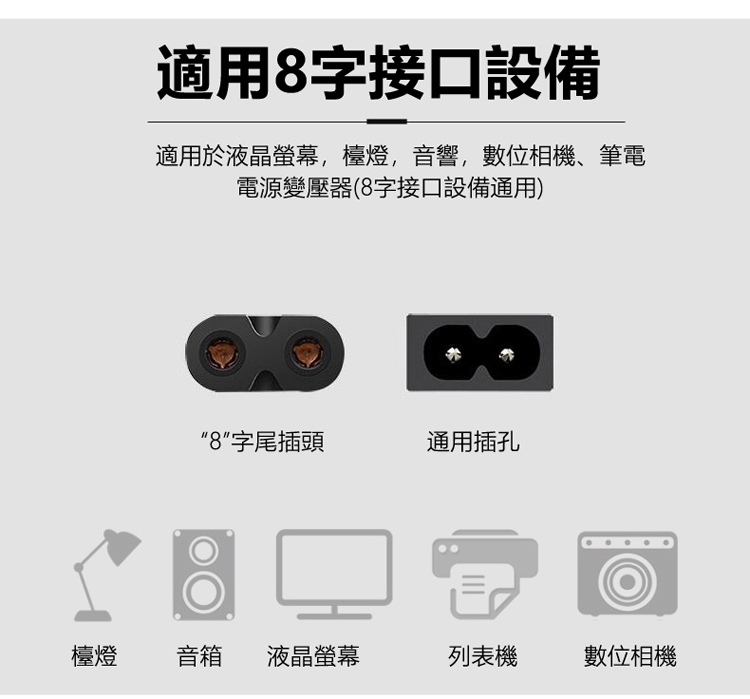 ◆線長2公尺,適用各式8字接頭設備
