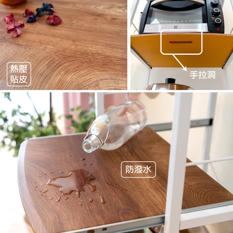 ▲材質:MDF熱壓成型板材、鐵管、金屬五金