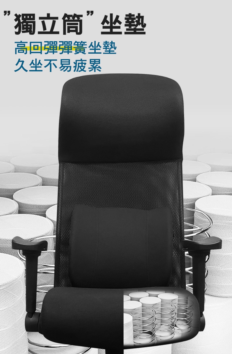 採用高回彈獨立筒彈簧坐墊,層層支撐精準承托身形,坐感彈韌適中,長時間久坐亦能維持舒適,減少疲勞感。