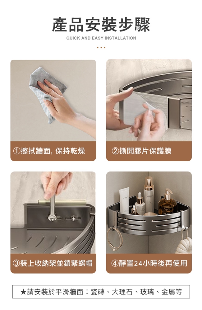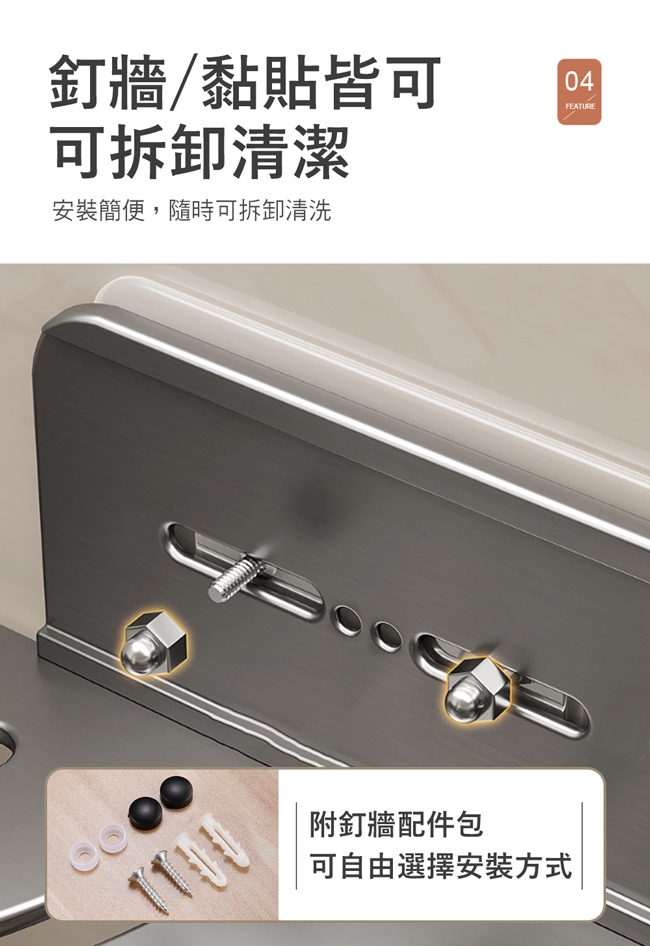 ◆ 內容:收納架x1、掛勾x2、膠片x2、釘牆螺絲1包