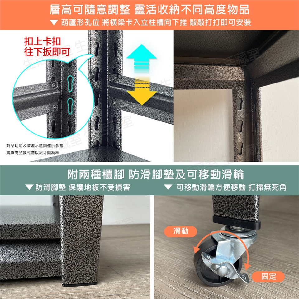 第三層層板位在上下框架的連接處,有上下固定作用,故此層板無法上下調整。