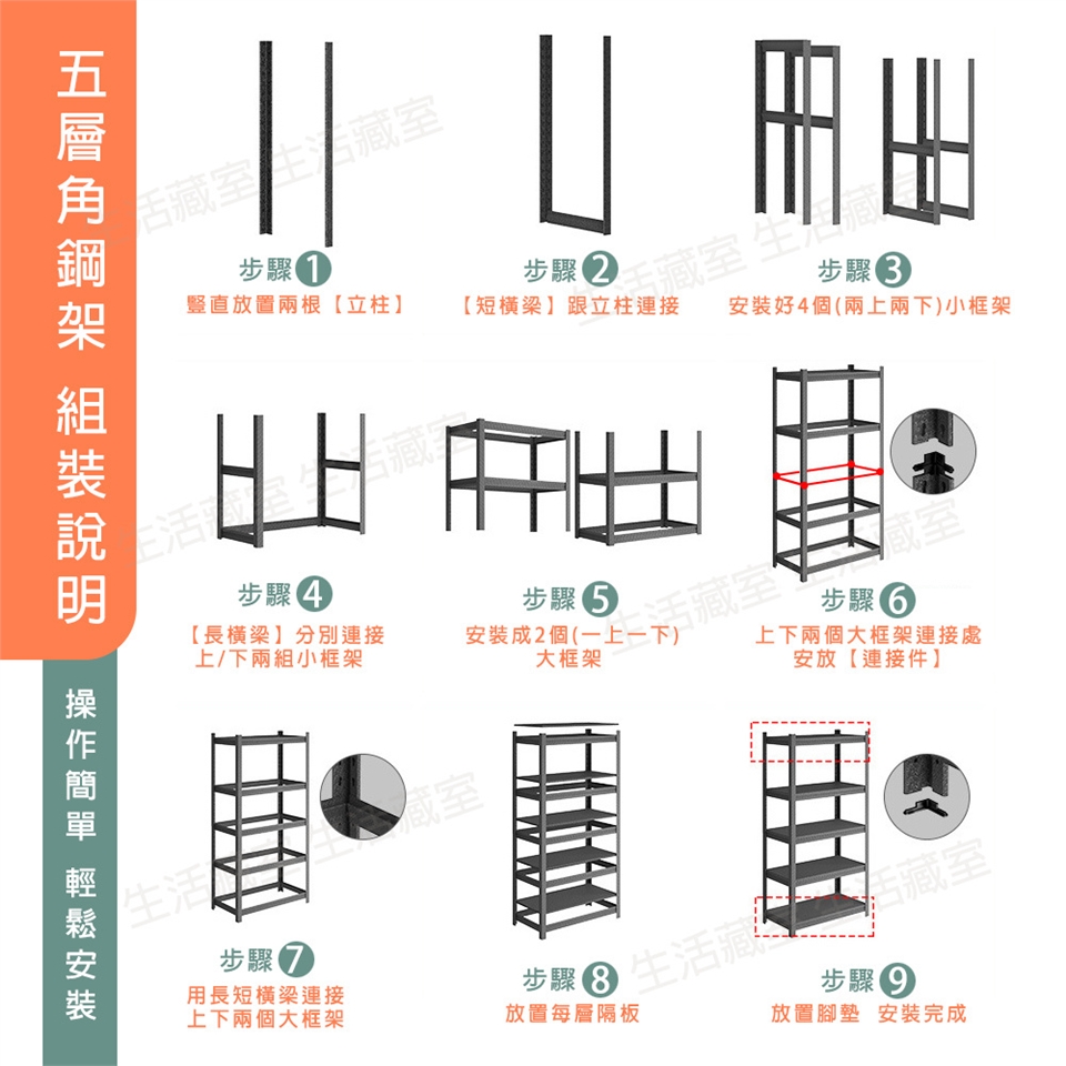 商品名稱: [生活藏室]工業風免螺絲耐磨耐刮五層置物架/收納架/角鋼架80x40x158