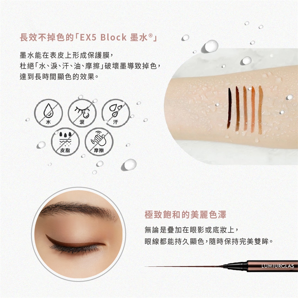 ●「水、淚、汗、油、摩擦」的破壞,超長持色時間
