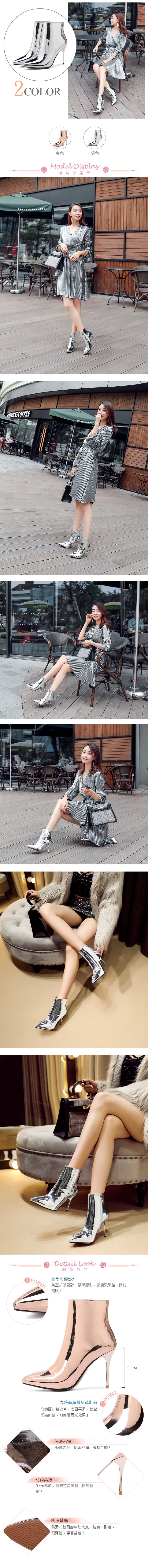 【KISSXXX】金屬高跟短靴/全鏡面金屬質感高跟短靴 女鞋 銀