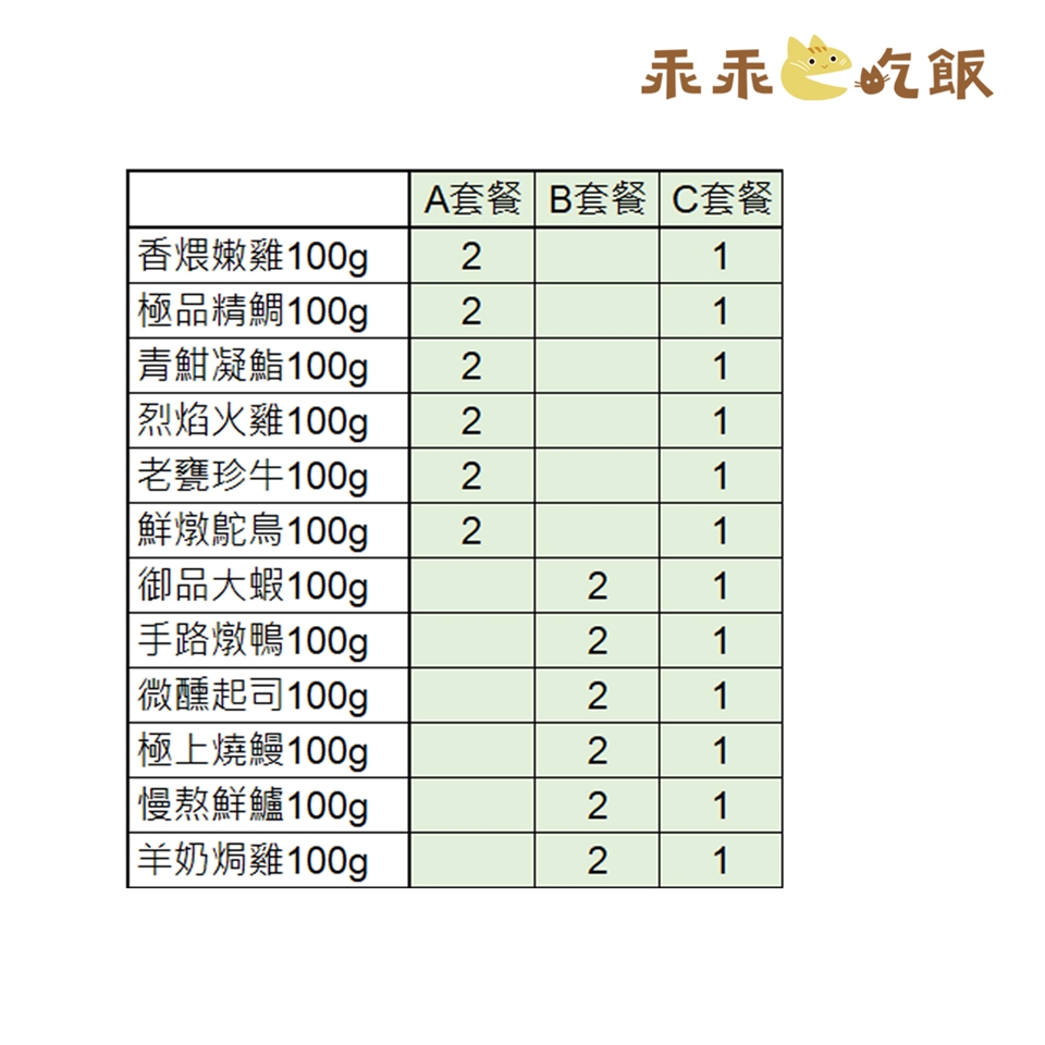 12包 A套餐(嫩雞,精鯛,凝鮨,火雞,珍牛,鴕鳥各2)