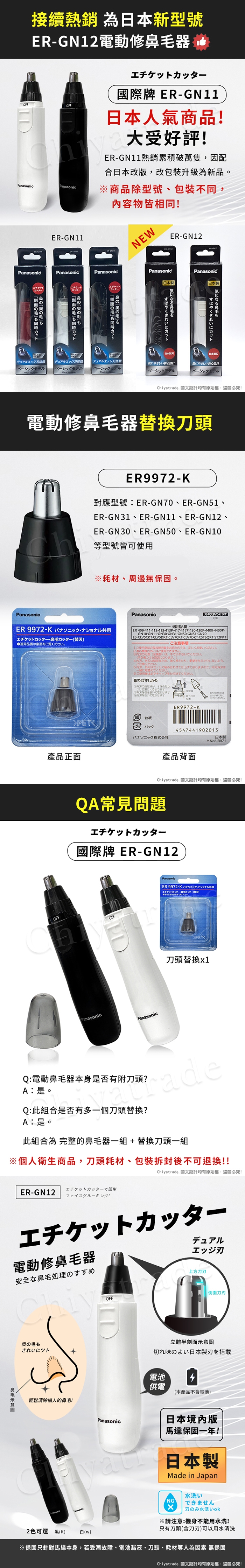 替換刀頭對應型號:ER-GN70、ER-GN51、ER-GN31、ER-GN11、ER-GN12、
