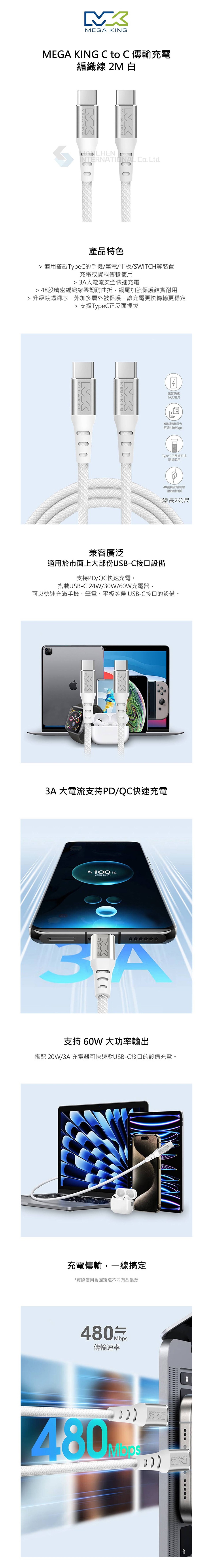 •適用搭載Type-C的手機/筆電/平板/SWITCH等裝置充電或資料傳輸使用