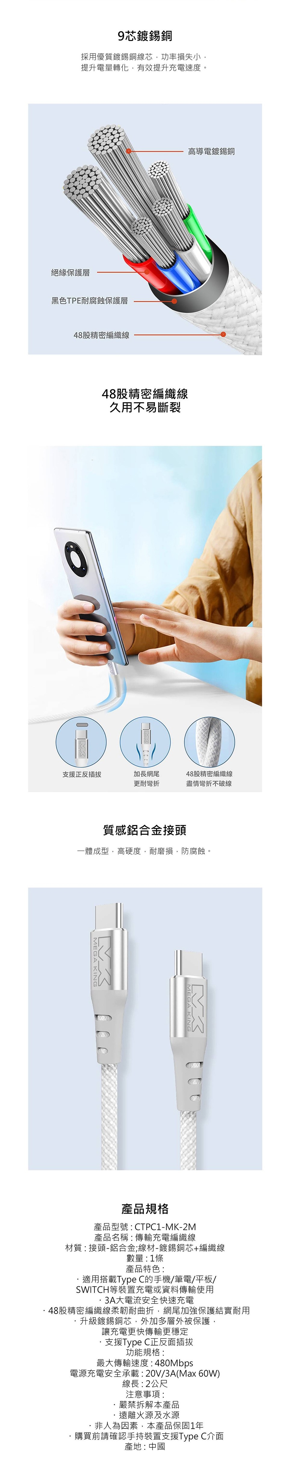 •升級鍍錫銅芯,外加多層外被保護,讓充電更快、傳輸更穩定