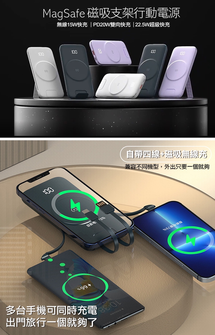 ONAIR 10000型 自帶線磁吸式無線充線行動電源+支架 (支援Magsafe)