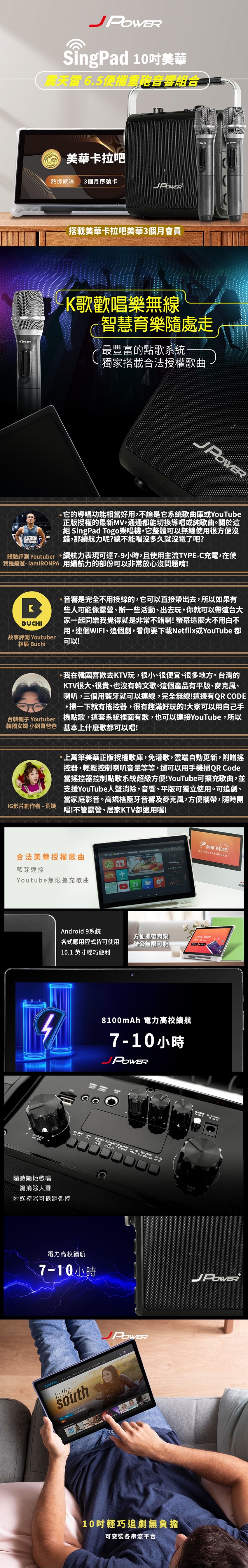 JPOWER 杰強 SingPAD樂唱機震天雷(美華平板 3個月序號6.5便攜無線藍牙KTV音響組合) (編號:JP-AV-TAB10A/KS-Tab156MA)