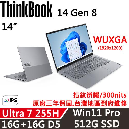 Lenovo聯想 ThinkBook 14 Gen8 14吋 時尚商務 Ultra 7 255H/16G+16G D5/512G/W11P/三年保