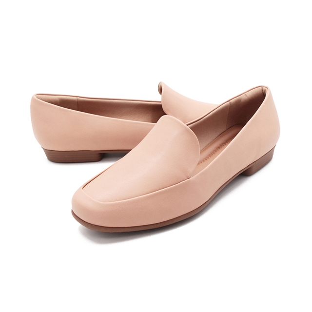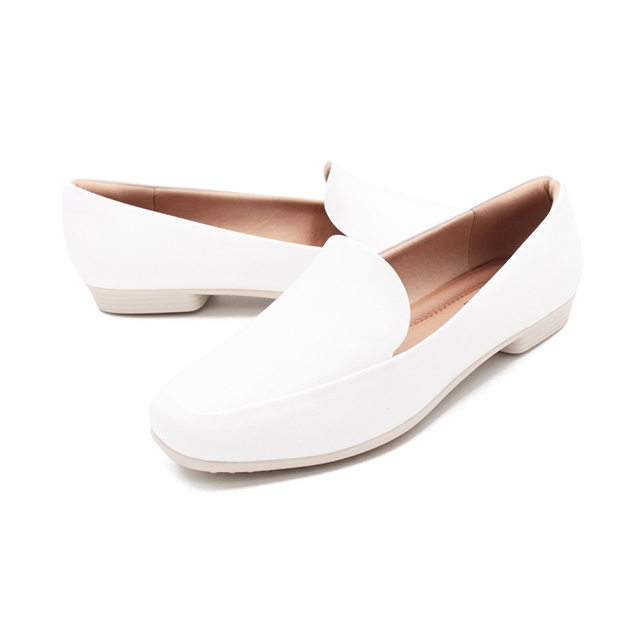 5.250169-2色 百搭方頭平底樂福鞋 女鞋-白.卡其