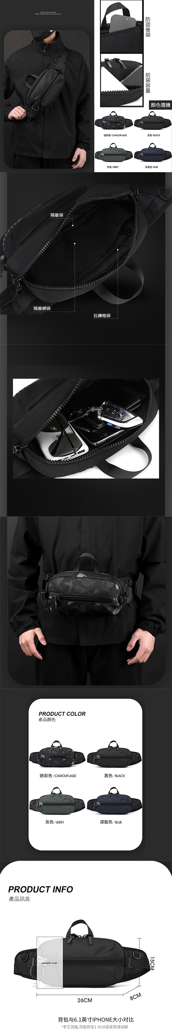 背法:胸包/肩包/腰包/手提