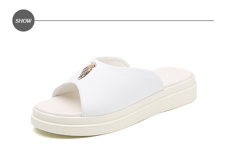 【MOM】真皮魚口珍珠厚底拖鞋/真皮魚口露趾優雅珍珠飾件厚底拖鞋 女鞋 白