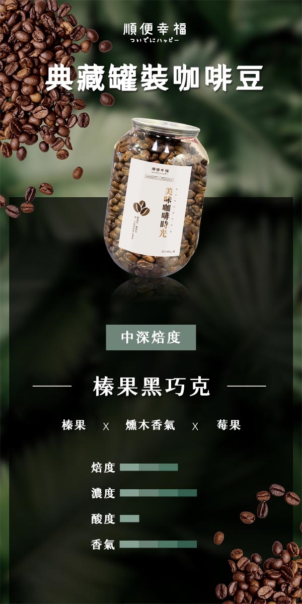 順便幸福 典藏罐裝咖啡豆-榛果黑巧克-規格說明: