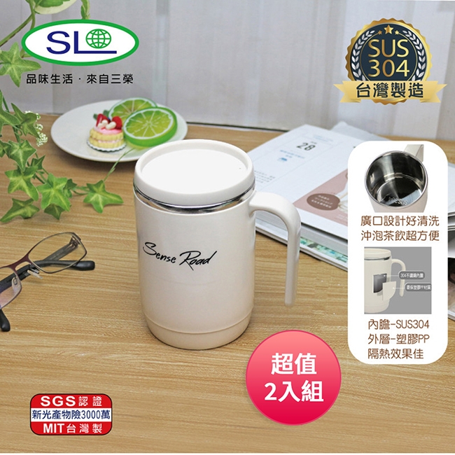 SL 304不鏽鋼內膽廣口獨享杯500ml R-4400 台灣製 超值2入組