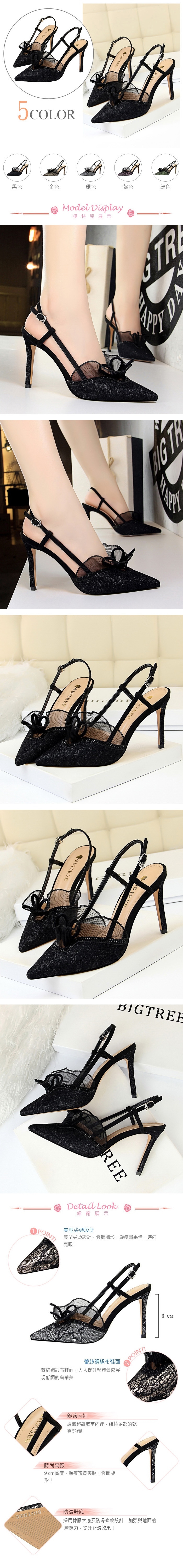 【KISSXXX】蕾絲尖頭高跟涼鞋/蕾絲紗花性感線條U口尖頭高跟涼鞋 女鞋 黑