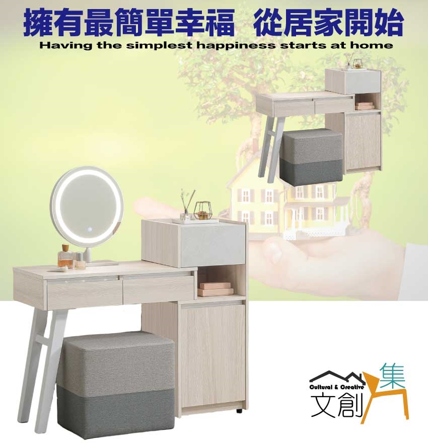 此化妝台桌面&櫃身部分可作伸縮96-116cm寬度使用增加居家便利性