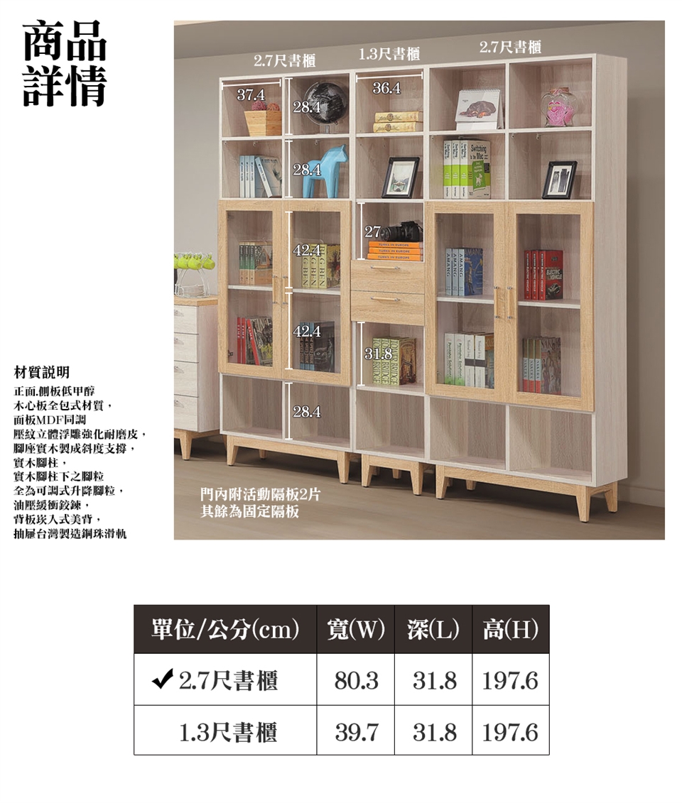 ※此賣場僅販售 梅梅2.7尺二門書櫃※