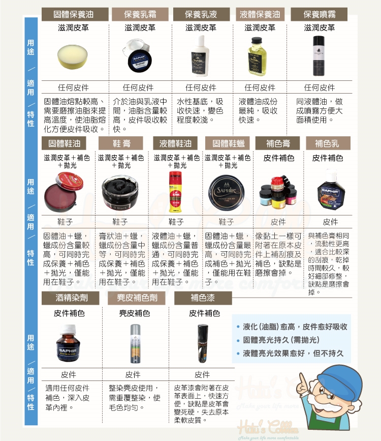 皮鞋、皮帶、錢包、皮夾克、手提包、皮家具
