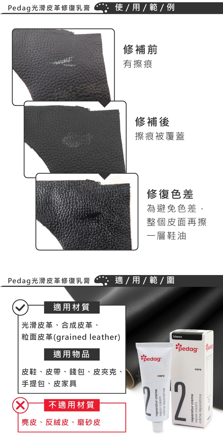 能修補皮革褪色、表面刮傷和小範圍的磨損等狀況,