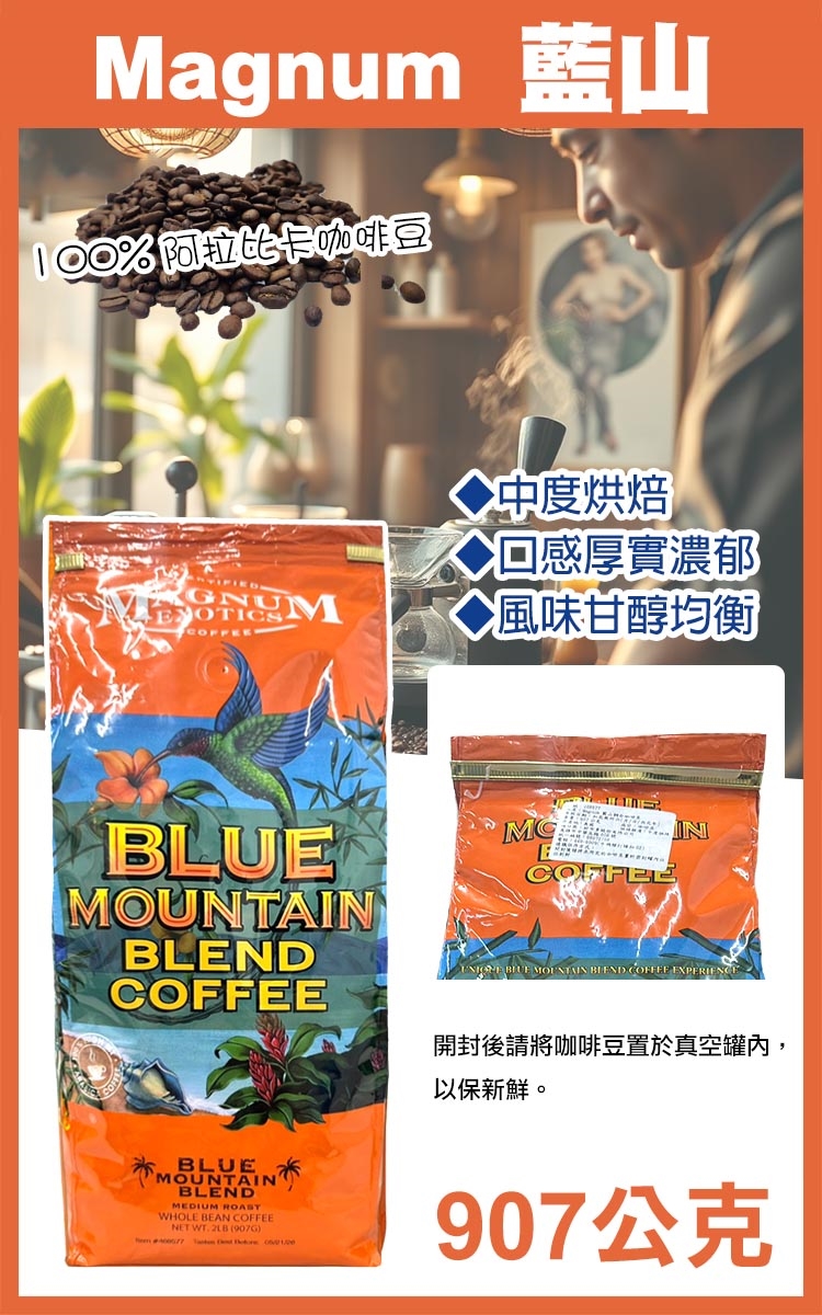 【Magnum 藍山】調合咖啡豆 907公克(咖啡豆 綜合咖啡 烘焙咖啡 優質咖啡/468577)