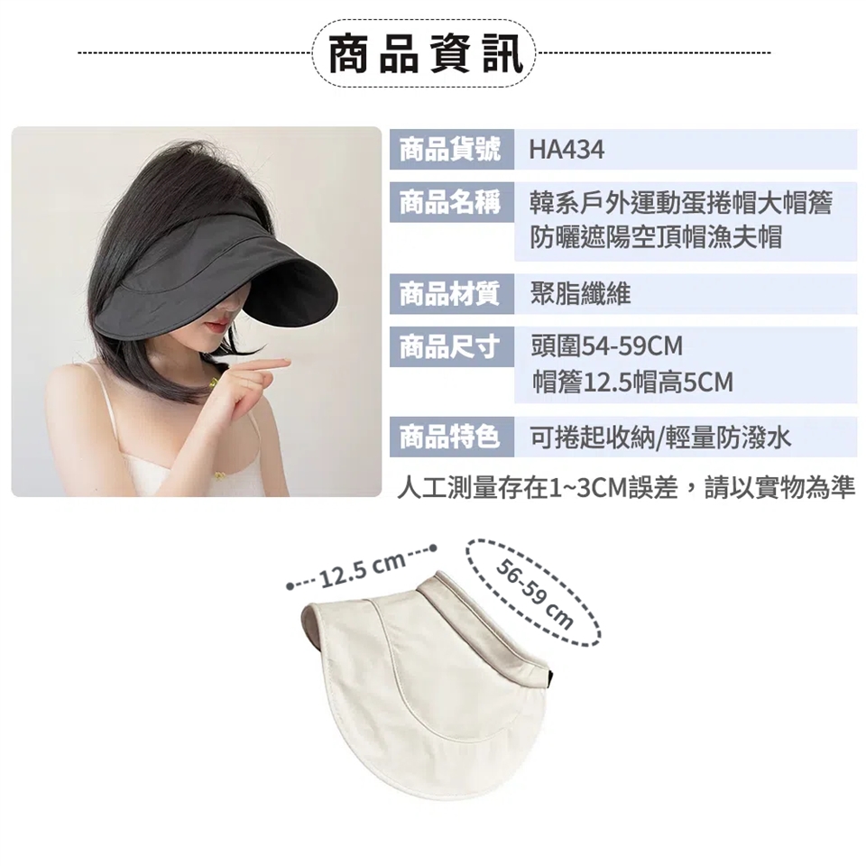 韓系戶外運動蛋捲帽大帽簷防曬遮陽空頂帽漁夫帽