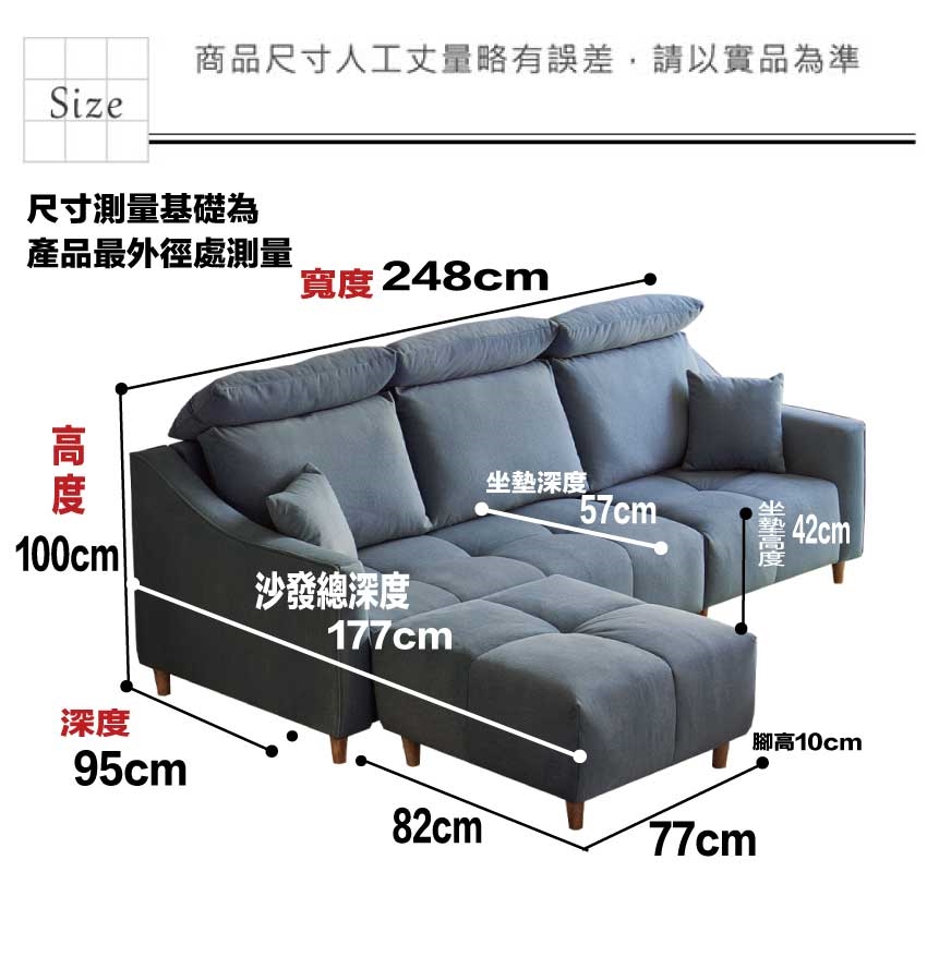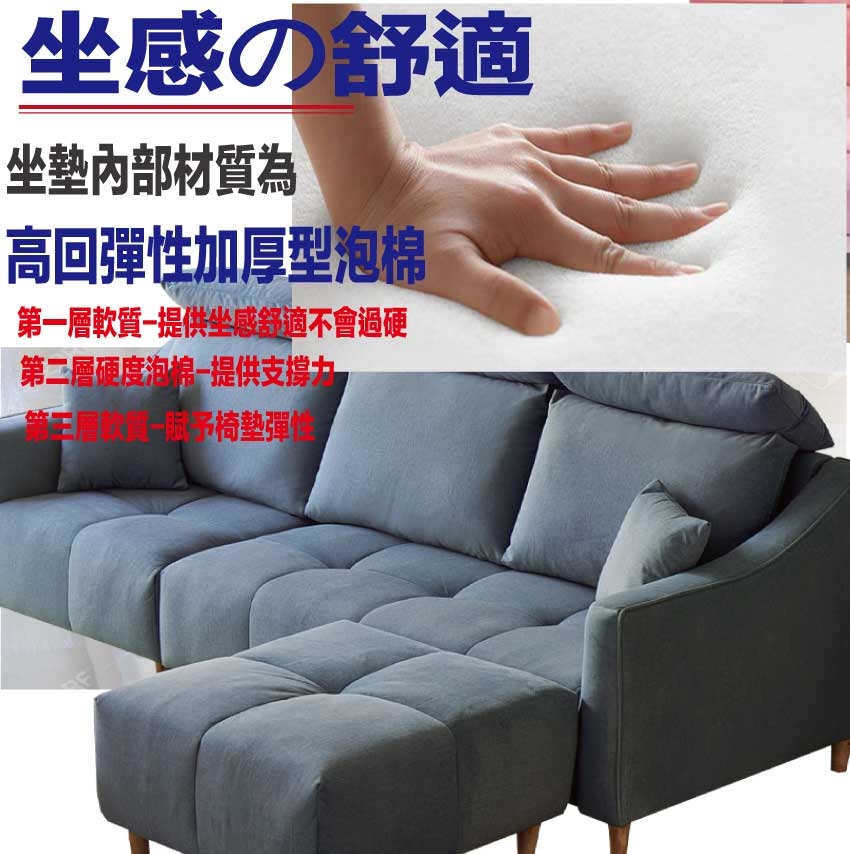 此組L型沙發椅為三人座+椅凳組合,椅凳可視使用需求自由擺放增加居家空間變化便利性