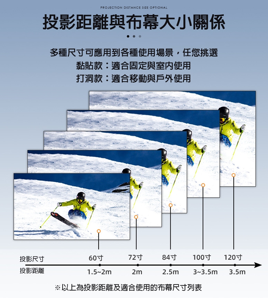 ★此款布幕非常非常不適合【超短焦型投影機】,因超短焦投影機的投影距離短,投影在布幕上容易造成影像扭曲