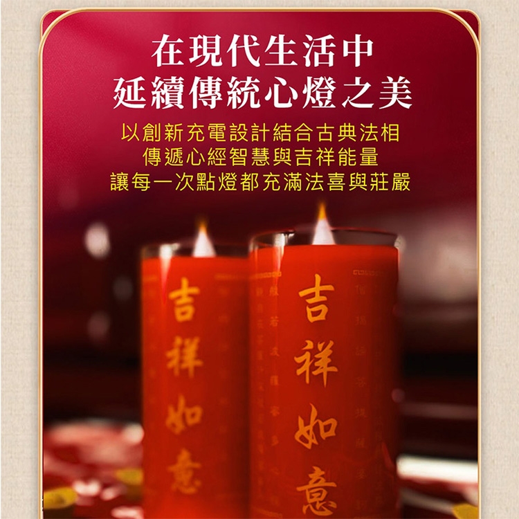 【新韻傳音】立體光充電款光明斗燭2入(LED蠟燭 法會供燈 仿真蠟燭 電子心燈 祈願心燈/D015C)