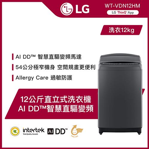 LG樂金 12公斤 AI DD™ Wi-Fi 智慧直驅變頻洗衣機極窄版(曜石黑) WT-VDN12HM (含基本安裝)