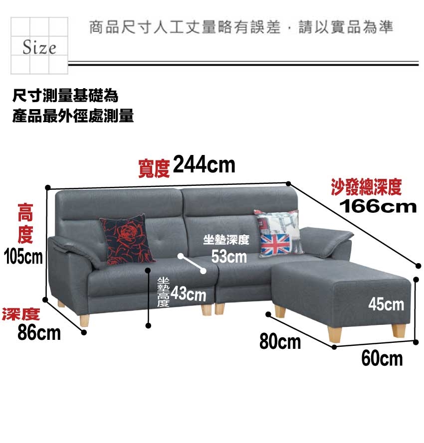 此組L型沙發椅為四人座+椅凳組合,椅凳可視使用需求自由擺放增加居家空間變化便利性