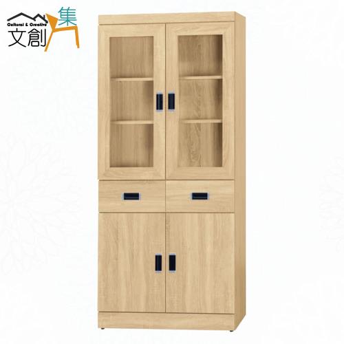 文創集 賽博斯2.7尺四門二抽書櫃(二色可選)