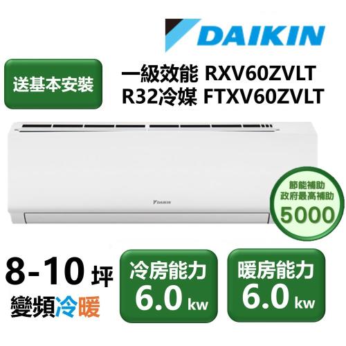 【家電速配 DAIKIN大金】區域限定 大關Z系列8-10坪一級效能節能減碳閃流放電直流變頻冷暖分離式冷氣(RXV60ZVLT/FTXV60ZVLT)