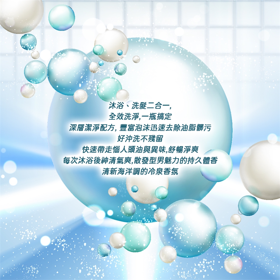 - 每次沐浴後神清氣爽,散發型男魅力的持久體香