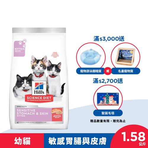 【Hills 希爾思】幼貓 敏感胃腸與皮膚 鮭魚與糙米特調食譜 1.58公斤 ( 3.5磅 ) 效期:20260630