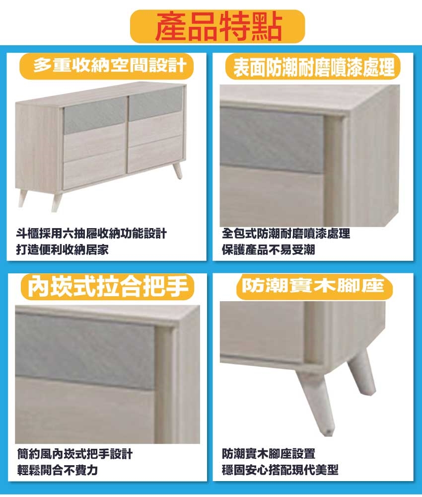 【文創集】凱威雙色4尺六抽斗櫃      木紋雙色系+安心材質製造,使用放心+搭配居家更便利,採用防蛀木心板+實木防磨腳座+五金滑軌結構等安心材質製造 ,外層採用防潮耐磨噴漆處理搭配採用六抽屜+開放式桌面等收納空間設計,全由專人配送到家,專業安心服務,替你省下更多時間!