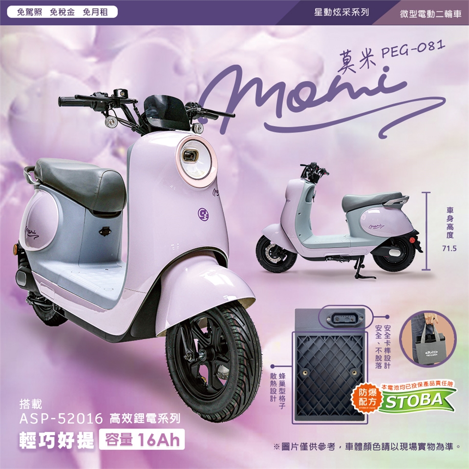 補助資訊: ◆注意:本車可申請環保補助金,補助金額及補助辦法依各縣市公告而定.◆補助款退至消費者個人帳戶,出車前請提供身分證正反面影本及個人帳戶封面影本.◆商品交貨時消費者應依政府相關法令請提供相關證件及填寫資料,政府規定每人只限申請一次,並只能開立個人發票,若發現有重複申請者,消費者需提供其他申請者身分資料. *小叮嚀: ◆本產品除本身瑕疵故障外,經落地騎乘後屬無法復原為全新品之商品 ◆請勿擅自拆卸車體,避免為您的車輛帶來未知的危險狀況。 ◆清潔車輛時請勿用水直接清洗及高壓水槍沖洗,以防電器件受潮短路。 ◆在天氣狀況較不穩定時,如雨天、起霧天氣騎行應保持安全車距。 保固內容: 以本車所提供之品質保證書內容條款詳述,鋰電池保固兩年(只限本賣場),車架、電機馬達、電子控制器、充電器、保固一年, 各項開關按鈕、轉把、喇叭、DC轉換器保固三個月,外殼塑件、燈泡、車胎、剎車皮屬消耗品無提供保固。 保固適用地區:台灣本島所使用之本公司電動自行車。 行進間注意事項: 1.嚴禁兩人乘座!依據慢車道路交通法規規定,除旗乘外,禁止於任何情況下搭載其他人員。 2.在能見度差時,需輔以照明騎乘,請開啟大燈照明以維持行車安全。 3.積雪、結冰、泥濘、高低不平之路面或濕滑的鐵板上,容易造成車輛滑倒,請下車推行。 4.請勿不當行駛,並遵守行車禮儀與安全、勿在馬路上進行不當之騎乘行為,如車輛蛇行、單輪騎乘、跳躍…等不適宜之行為。 5.飲酒後及身體不適時不要騎乘,以免身體運動能力與反應機能下降、危害行車安全。 6.不可單手騎乘。除必要交通示意手勢外、請雙手緊握車把騎乘,下雨天時、也請穿著雨衣騎乘,勿以單手騎乘車輛。 7.注意物品運載安全。 8.騎乘時,請勿穿著防礙駕駛安全服裝,以免衣物並入車輛輪圈、齒輪等轉動處,造成傷害之危險。 9.肢體及物品不可接近車輛回轉部位。嚴禁人員將肢體或任何物品伸入車輪輪圈、鏈條、齒輪…等轉動處,以避免有可能造成傷害之危險。 10.車輛涉水深度。本車為電動產品,大雨時或涉水深度超過10cm,請避免使用或繞道,以避免馬達或電路系統浸水而導致損壞。 11.不騎乘或牽動車輛時,為維護安全請關閉電源以防不慎驅動馬達,造成車輛爆衝。 12.電池沒電時應盡速對電池進行充電,防止造成過放(人為因素造成過放恕不保固).長時間不騎乘時應將電池充飽電放置通風處.
