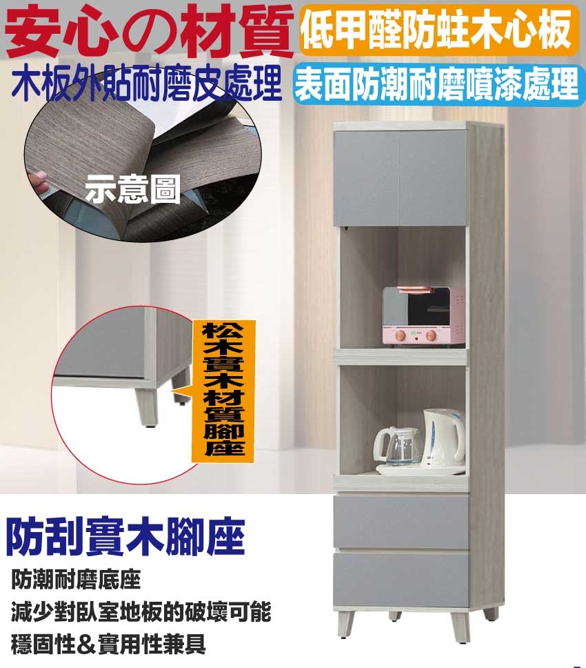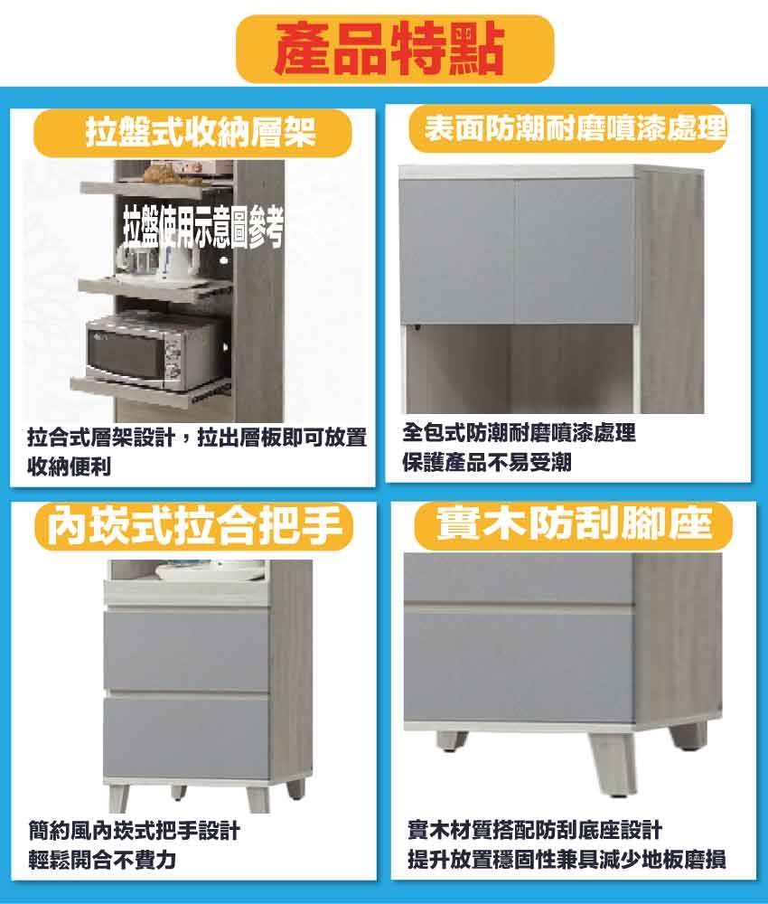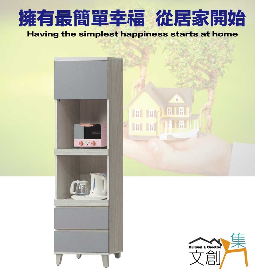 【文創集】瑞瑟雙色2尺拉盤二抽高餐櫃/電器櫃 木紋雙色系+安心材質製造,使用放心+搭配居家更便利,採用防蛀木心板+實木防刮腳座+五金滑軌結構等安心材質製造 ,外層採用防潮耐磨噴漆處理搭配採用開門櫃+拉合式層架+二抽屜+內外開放層格等收納空間設計,全由專人配送到家,專業安心服務,替你省下更多時間!