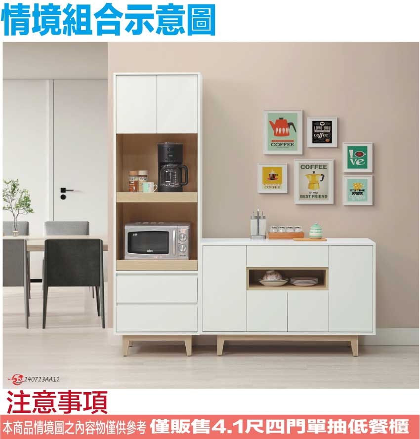 【文創集】歐瑞雙色4.1尺四門單抽餐櫃 木紋雙色系+安心材質製造,使用放心+搭配居家更便利,採用防蛀木心板+防潮耐磨底座+防夾手緩衝門片五金+白色面板外層採用皮革紋路特殊處理等安心材質製造 ,外層採用防潮耐磨噴漆處理搭配採用開門櫃+單抽屜+內&外開放層格等收納空間設計,全由專人配送到家,專業安心服務,替你省下更多時間!