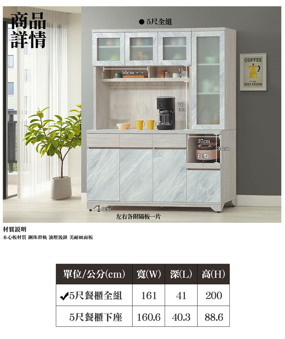 ※此賣場僅販售 妮艾5尺餐櫃全組※