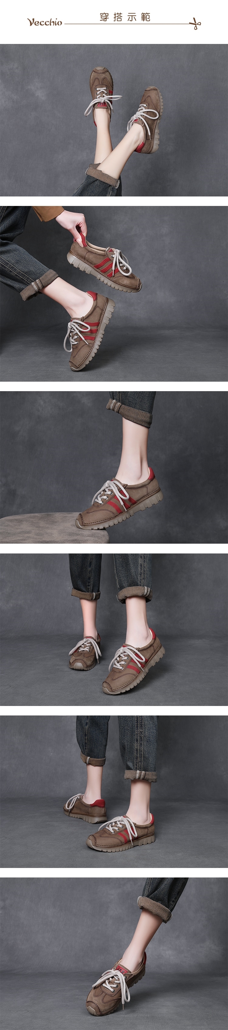 【VECCHIO】全真皮拼接厚底德比鞋/全真皮頭層牛皮復古線條拼接厚底德比鞋 休閒鞋 女鞋 棕